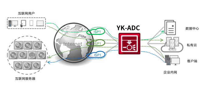 William希尔体育通明湖应用交付控制器提供链路负载均衡技术(LLB)和全局负载均衡技术(GSLB)分别实现出向流量(Outbound)和入向流量(Inbound)的统一管理。